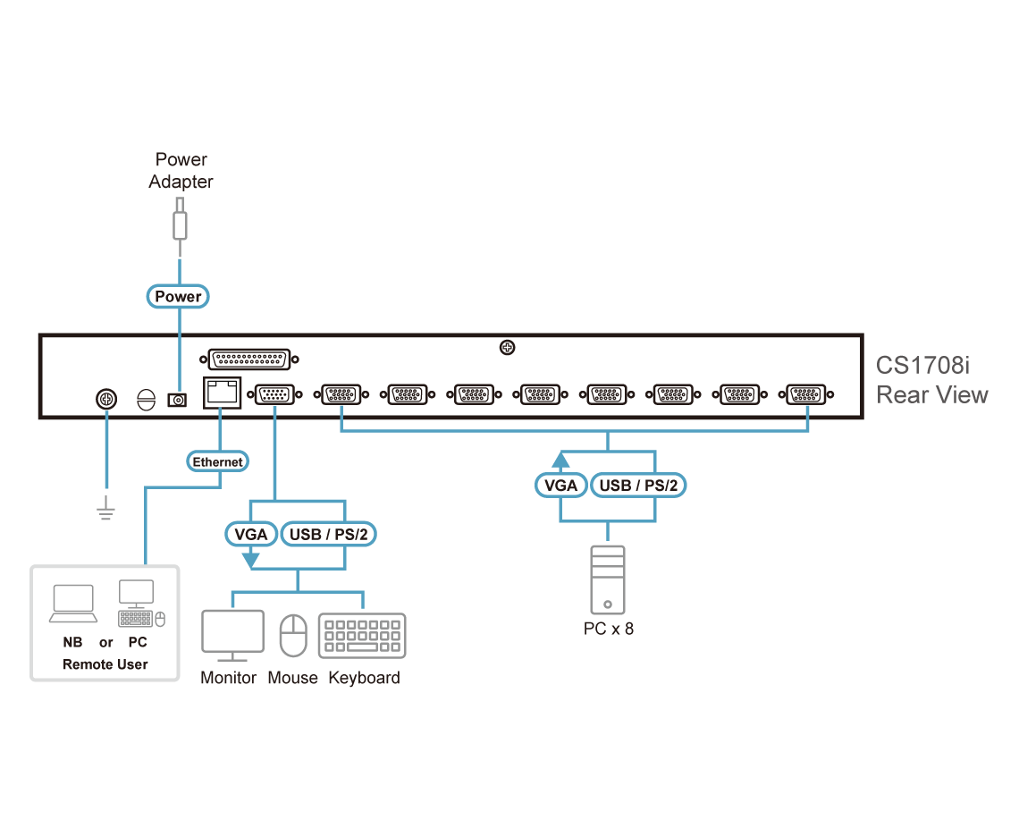 ATEN CS1708i – 8 портовый PS/2-USB KVM Over the NET переключатель, IP KVM Switch