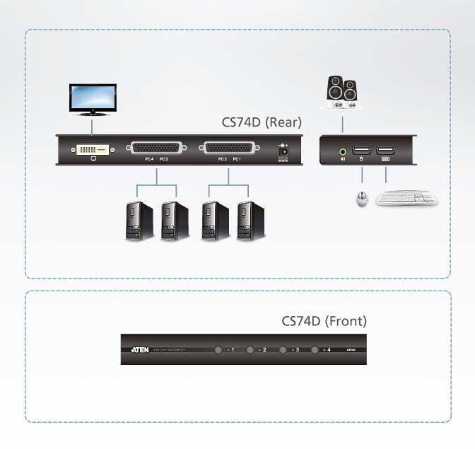 ATEN CS74D – 4 портовый USB, DVI, KVM Переключатель, KVM Switch