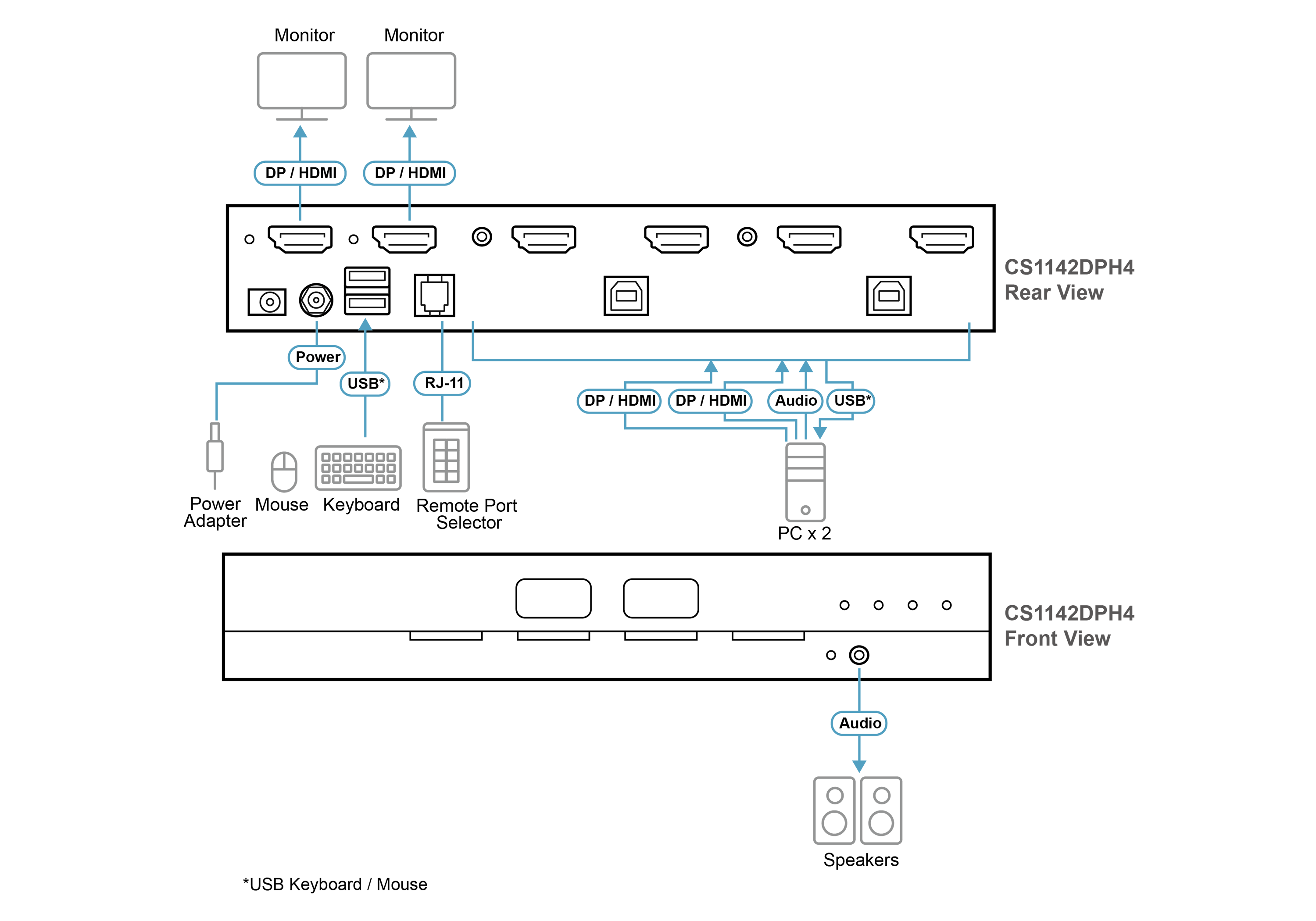 - 1x CS1142DPH4 2-портовый защищенный KVM-переключатель