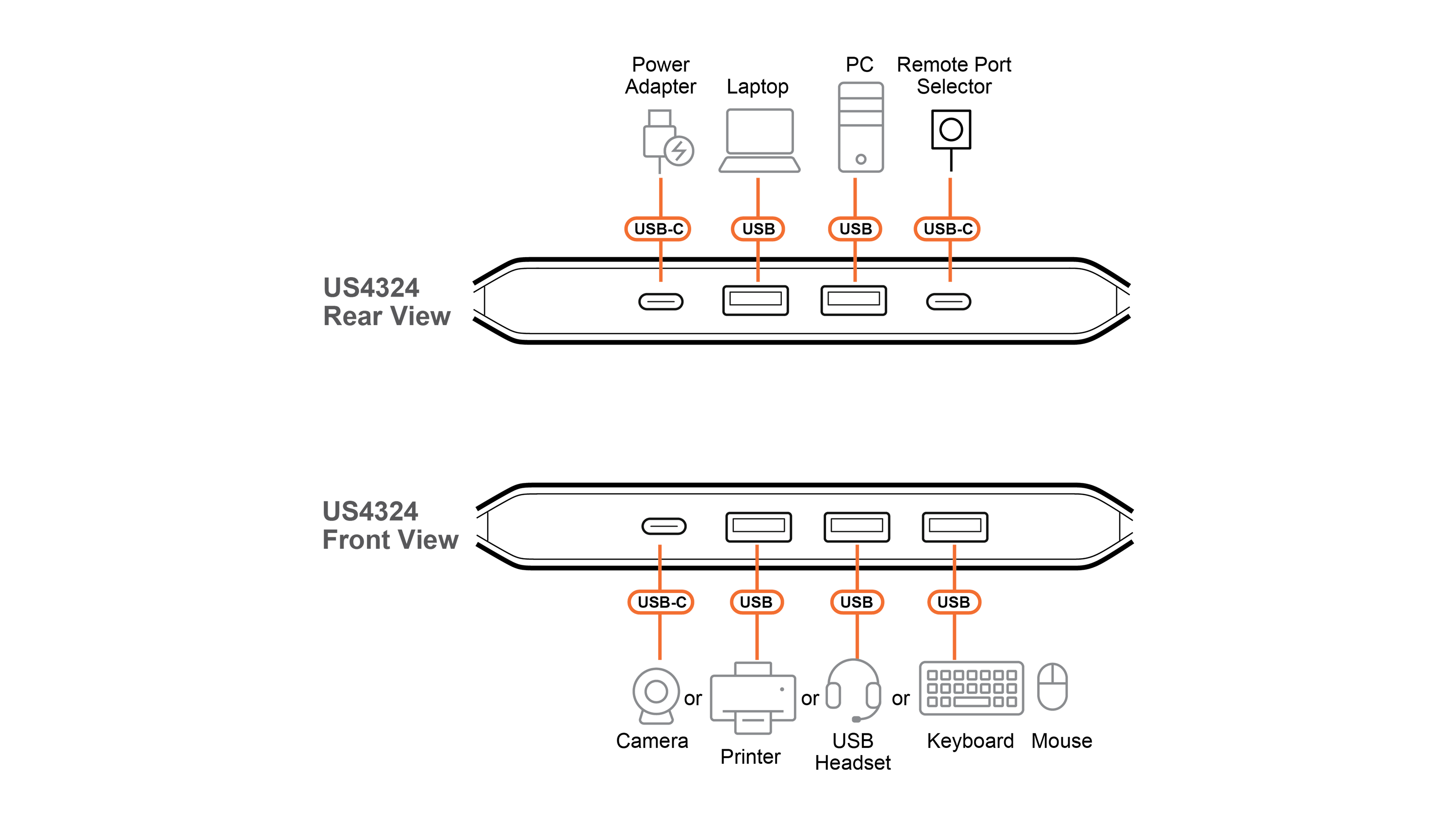 - 1 x US4324 2 x 4 USB 3.2 Gen 1 переключатель