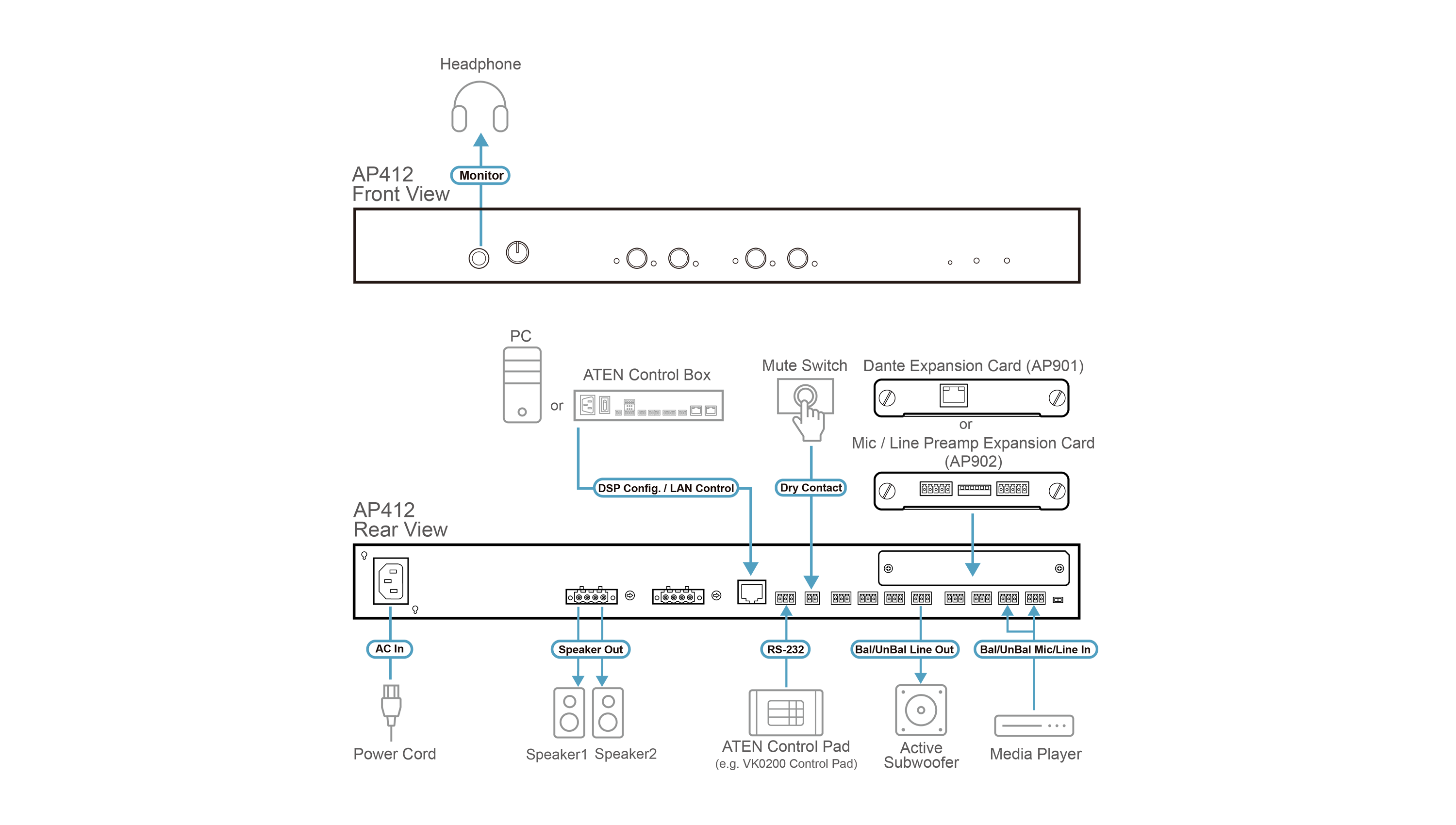 ATEN AP412 / AP412-AT-G — 4-канальный усилитель мощности с функцией DSP (120 Вт)