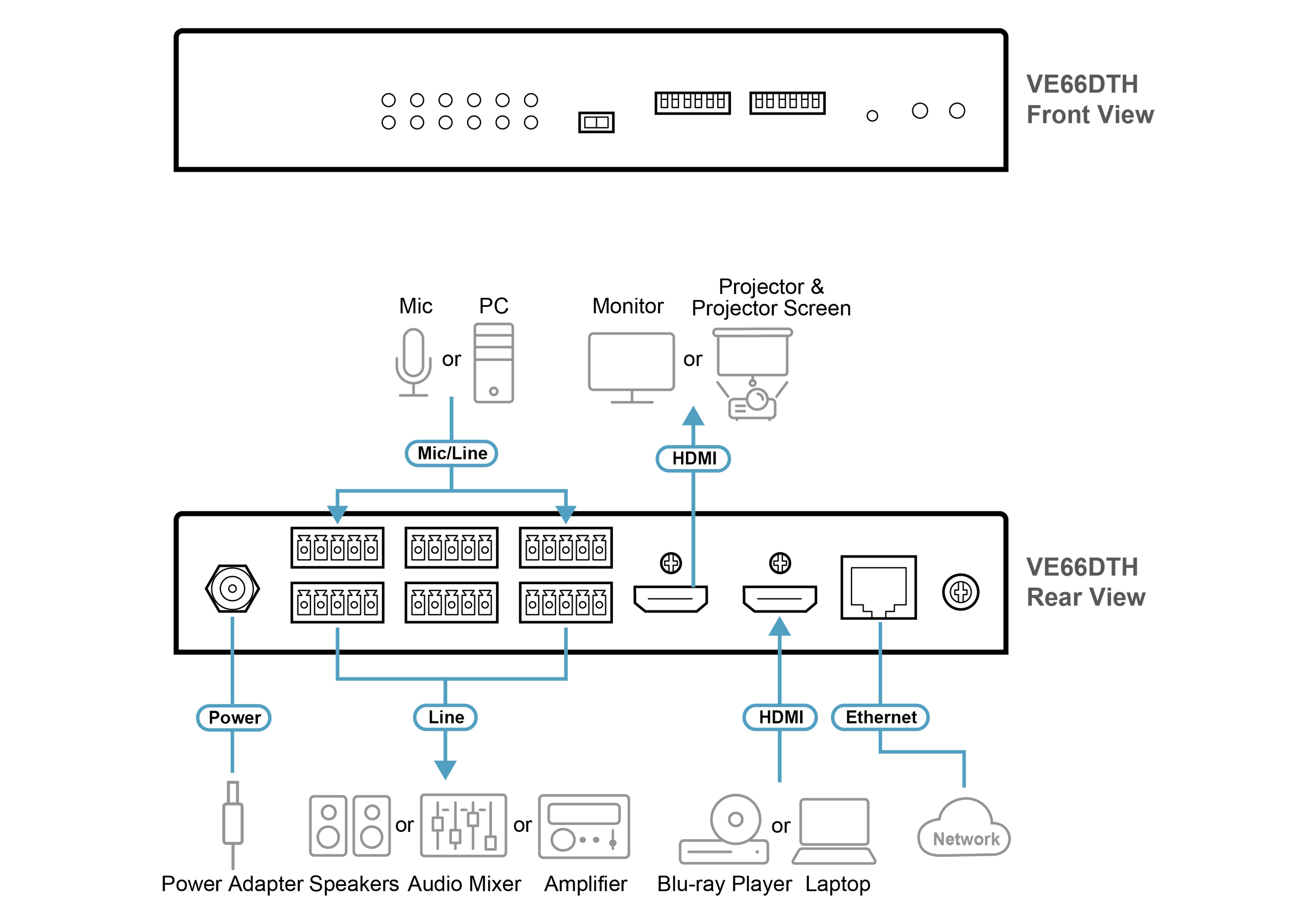 - Поддерживает локальный вывод HDMI 2.0 - VE66DTH может встраивать звук из Dante-облака в HDMI-вывод