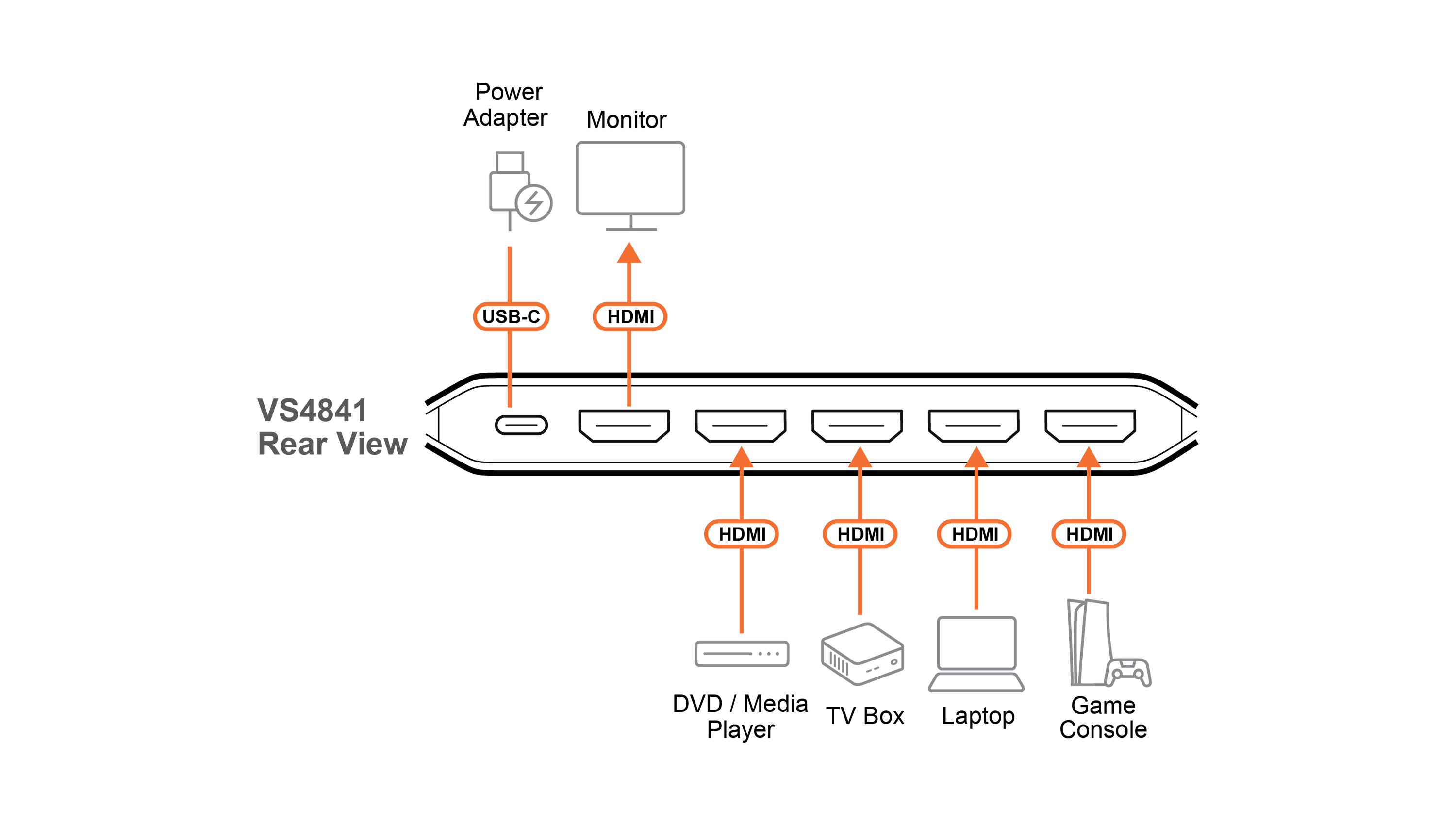 Поднимите уровень своей домашней развлекательной системы или профессионального AV-оборудования с помощью VS4841 — 4-портового HDMI-переключателя, позволяющего мгновенно переключаться между четырьмя источниками видеосигнала на одном дисплее простым нажатием кнопки. Благодаря технологии RapidSync™ VS4841 обеспечивает потрясающее изображение в формате True 4K, устраняет путаницу кабелей, обеспечивает высокоскоростное переключение AV-сигналов и делает просмотр легким и захватывающим.