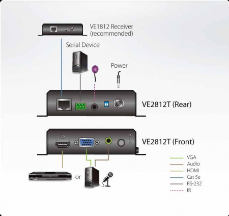 ATEN VE2812T – Передатчик HDMI и VGA, HDBaseT, (4K@100м / 1080p@150м)