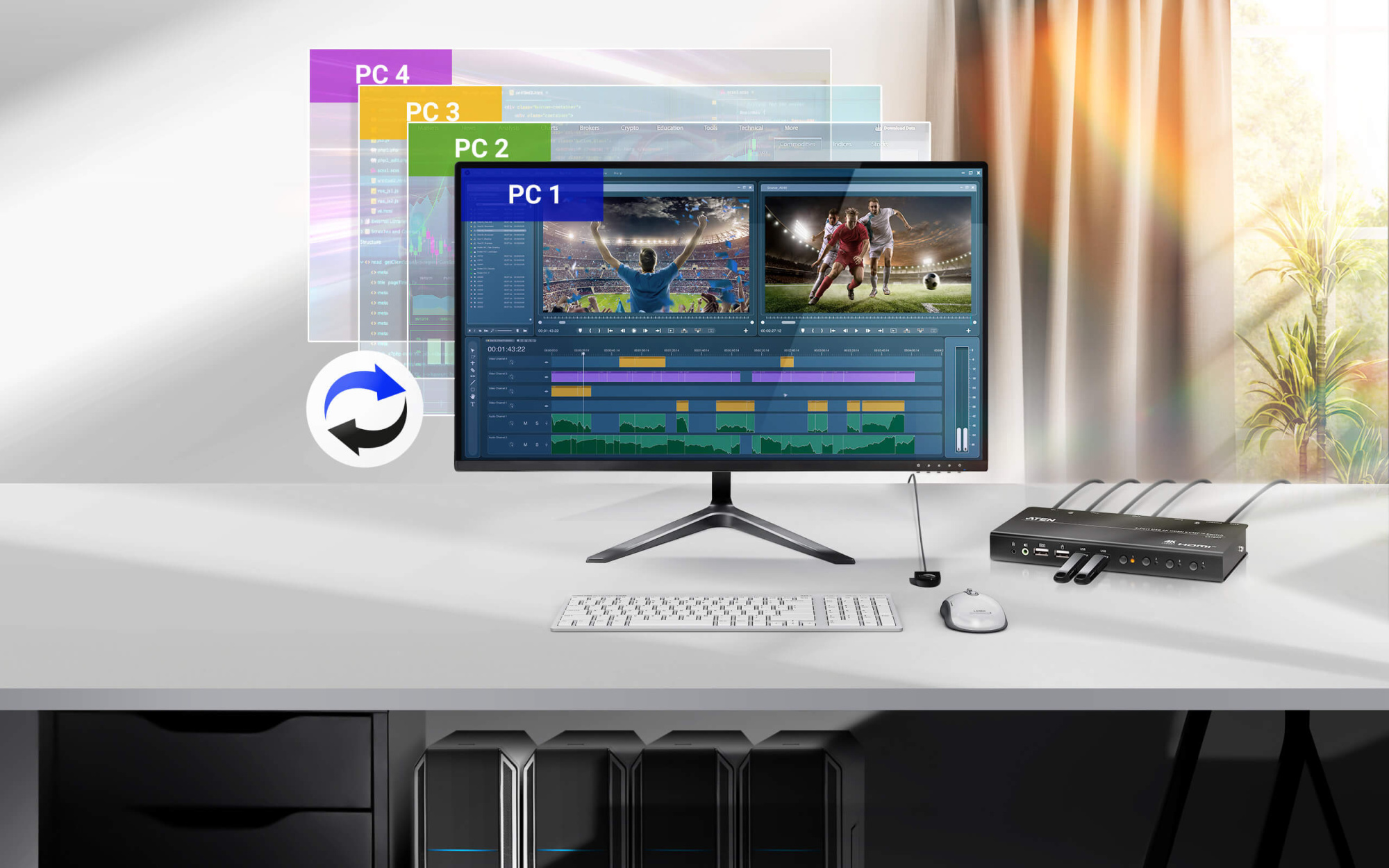 Управляйте четырьмя компьютерами с одной консоли без хаоса: новый KVM-переключатель ATEN CS784H организует ваше рабочее пространство и повысит продуктивность.