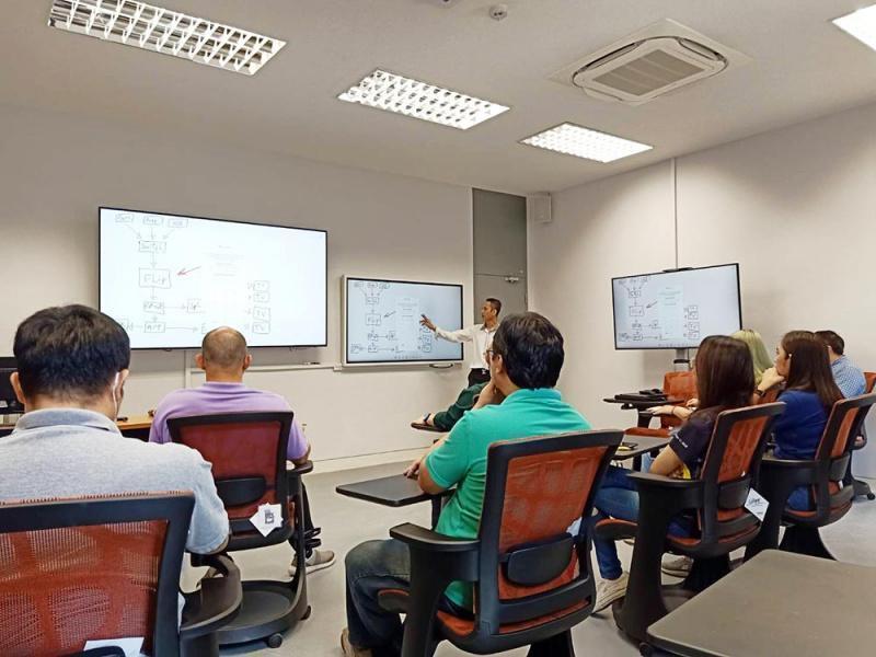 Используя подключенный ноутбук или ПК, преподаватели и учащиеся могут легко использовать свой дисплей на всех мониторах в классе для расширенного группового обучения. |