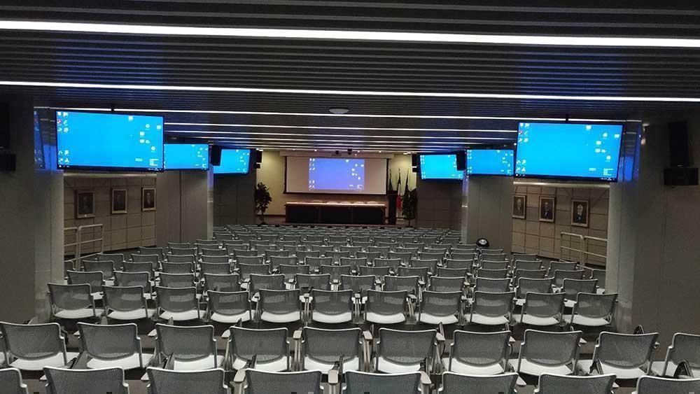 Многофункциональному залу требовалось стабильное, надежное и высококачественное распределение AV-сигнала на несколько мониторов и проекторов. |